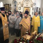 Перед мощами было совершено вечернее богослужение и Чин прощения. Ковчег с мощами будет пребывать в Свято-Успенском храме всю первую седмицу Великого поста, и верующие смогут помолиться святым угодникам, приложиться к мощам, испрашивая милости и их помощи. Каждый день духовенство Ольгинского благочиния будет совершать молебны.